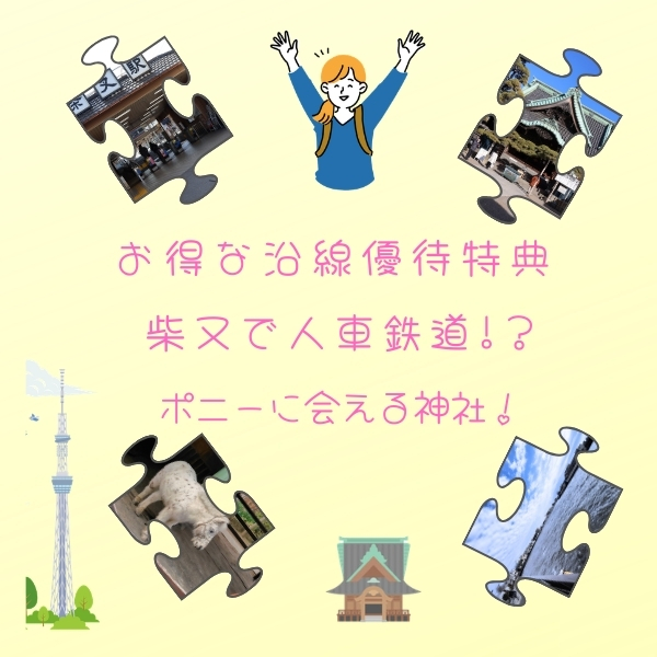 スカイツリーや上野などを訪れた後に、ポニーが見れる神社、人が押す鉄道など少し変わったスポットを、京成電車に乗っておとずれてみるのも、ほっとひといきつける時間になりますよ。