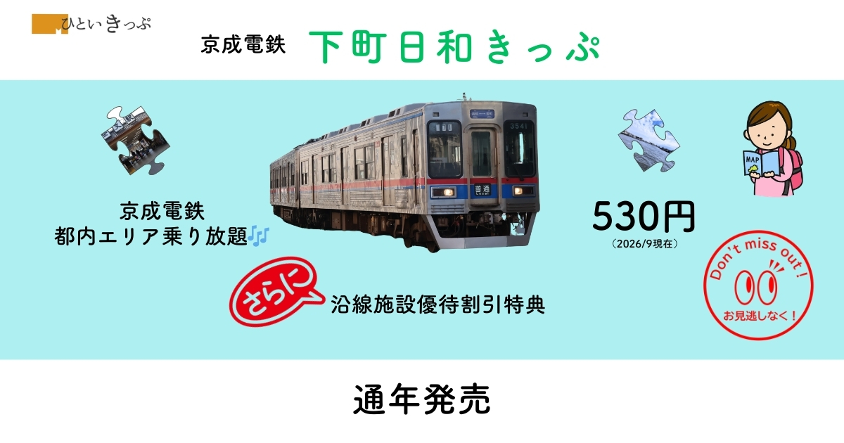 柴又など見どころの多い、東京都区内の京成線を、1日自由に乗り降りできるのが「下町日和きっぷ」です。