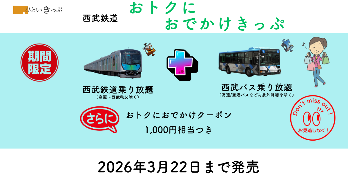 西武鉄道が2026年3月22日まで期間限定で発売している超オトクなきっぷをご案内します。