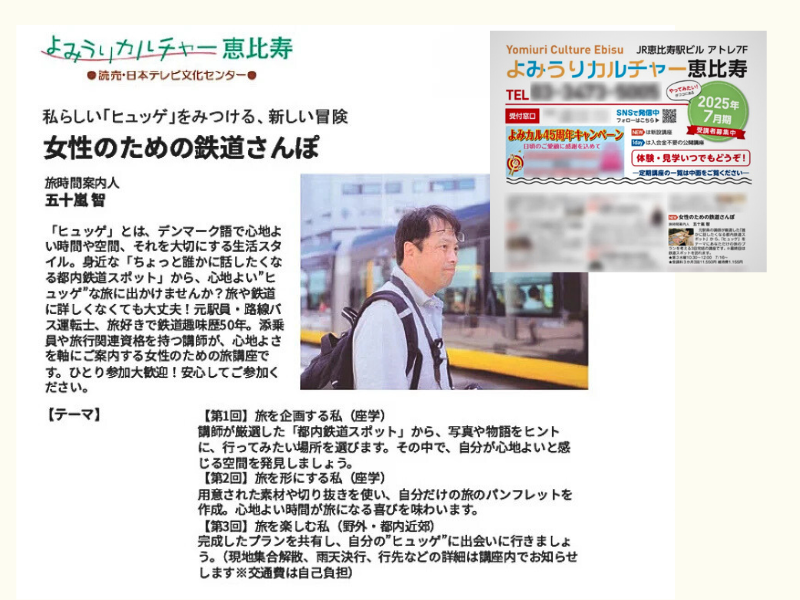 ちょつと「ひといき」できる街の面白いスポットや、電車やバスの期間限定オトクきっぷの情報をお届けしています。