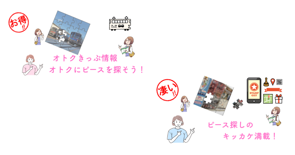 それぞれをパズルのピースに例え、ちよっと交通機関やきっぷが苦手、もっと気軽に自分が見つけたピースを共有したい、そんな女性の方に向けて、ご案内しているサイトです
