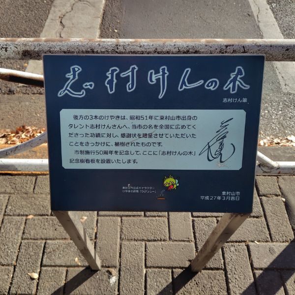 この「ケヤキ」、志村けんさんが「東村山市」の名を全国に広めた功績に対し、植樹されたものだそうです。