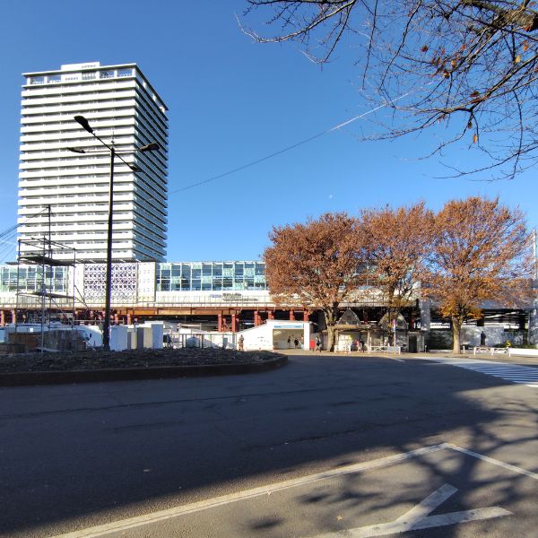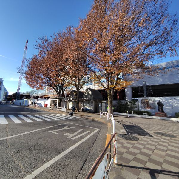 東村山駅は高架化工事が進行中、仮設の小さな出口から外へ、大きな「ケヤキ」に圧倒されながら少し進むと