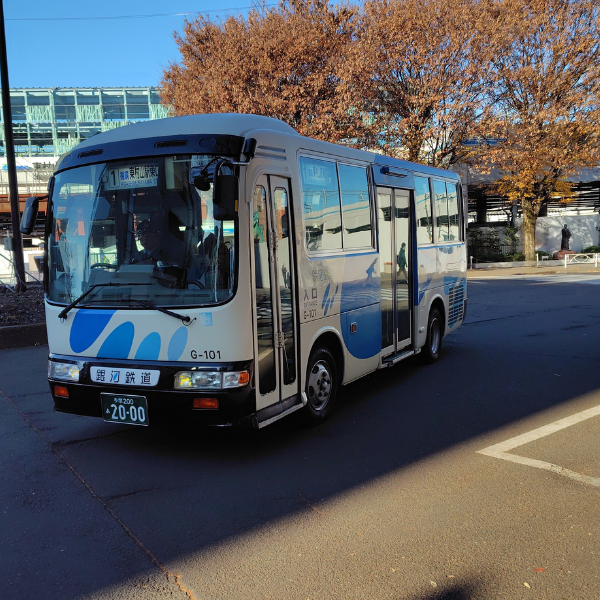 志村けんさんに、見送られて東村山駅を発車する『銀河鉄道』の路線バス!