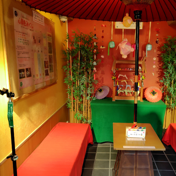 書き処には机といす更に願い札に合わせたペンも用意されており、ゆっくり考えながら記入ができます。