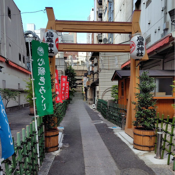 新橋駅から徒歩3分の路地裏にある「心願色みくじ」が有名な神社