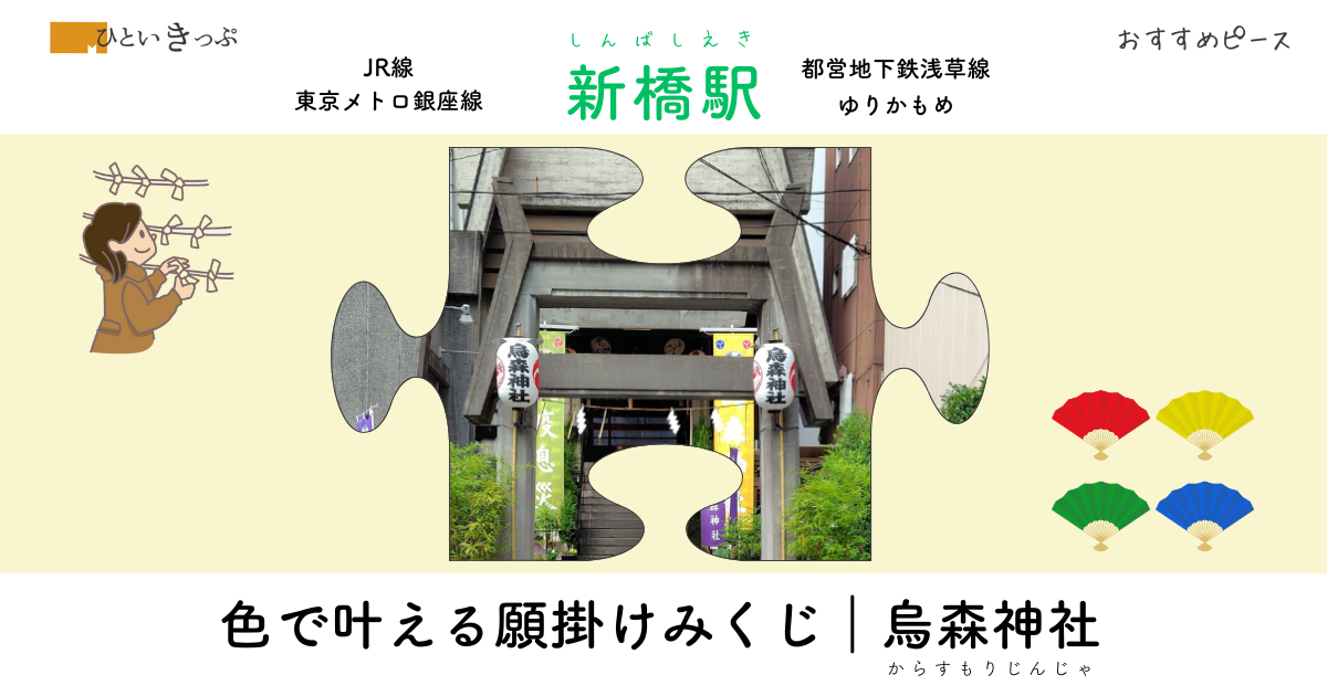 新橋駅から徒歩3分の路地裏にある「心願色みくじ」が有名な神社