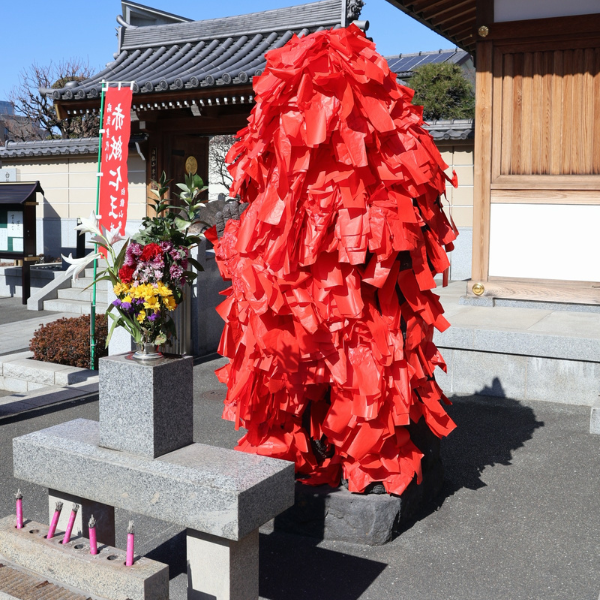 赤紙は、山門をくぐって左手へ進んだ寺務所で、購入することができますよ。